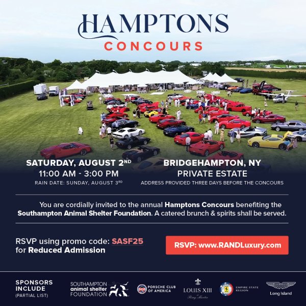 We're excited to announce that Southampton Animal Shelter Foundation will be at this year’s Hamptons Concours—an exclusive automotive experience where luxury meets purpose.